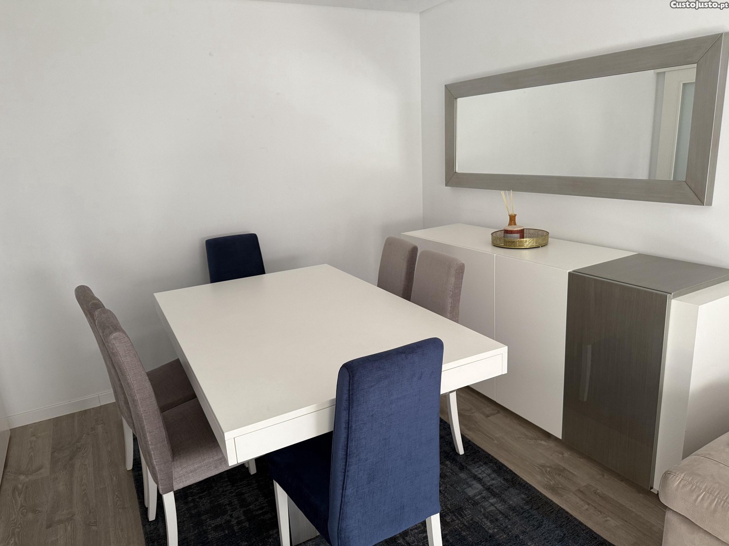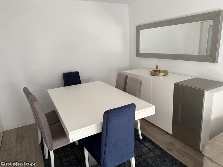 - Mesa de jantar extensível (fechada: 160x100x77) 400 + 6 cadeiras 200 (8 lugares mesa aberta). Total 600