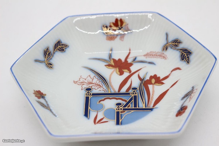 Covilhete sextavado (ou cinzeiro Mafalda) Vista Alegre decoração Imari 1980 com 15 cm