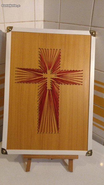 Vendo quadro com cruz decorada com linha.