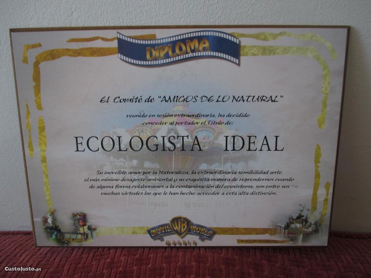 Preço: 10 €Diploma ECOLOGISTA IDEAL, em madeira, MovieWBWorld