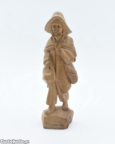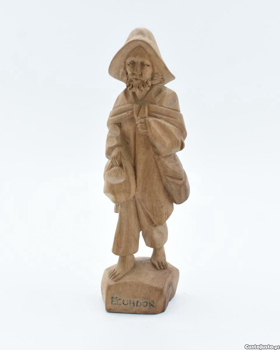 Peregrino, Escultura artesanato esculpido em madeira envernizada. Com a inscrição "Ecuador" e a indicação "Escuela Guayas". Século XX