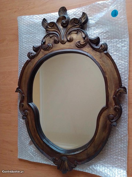 O espelho tem aproximadamente 46cm de altura e 36cm de largura.
