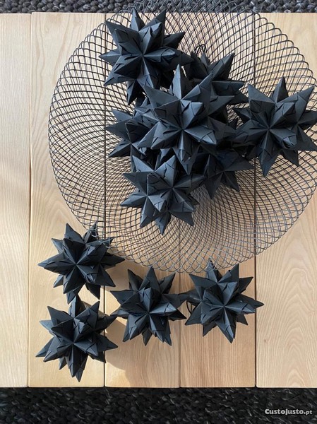Conjunto de 6 Estrelas de origami feitas à mão em papel preto, excelentes para decoração ou para presente original. Têm aproximadamente 12 cm de diâmetro. Tem uma fita para poderem ser penduradas.