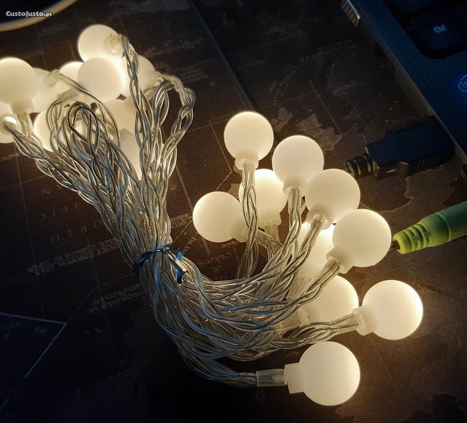 Fita de Luzes LED Branco Quente USB 3 Metros 20 Bolinhas 2cm Nova