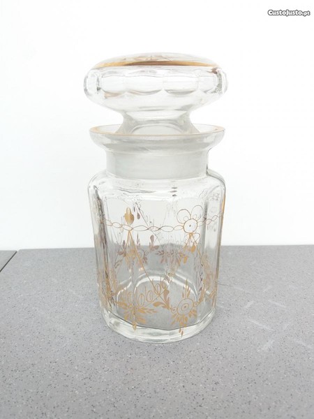 Preço: 15 €Frasco vidro com tampa, pintura a ouro