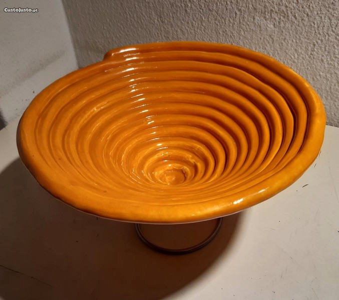 Preço: 15 €Grande Taça Fruteira Artesanal Cerâmica Pé em Aço