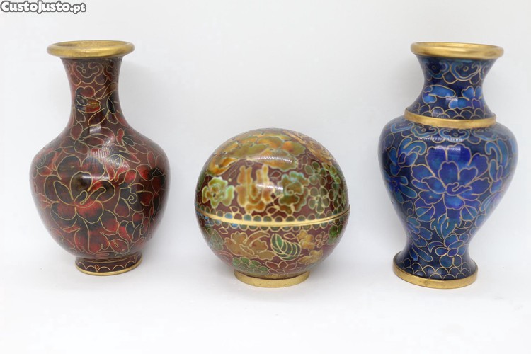 Preço: 25 €Jarra Chinesa em Metal Cloisonné Decor floral 10 cm