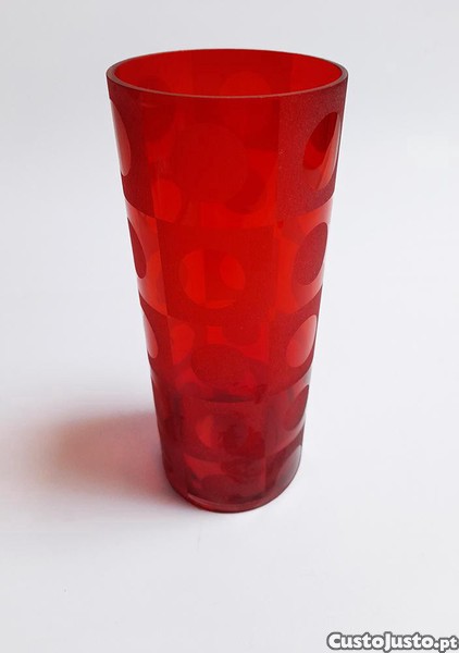 Preço: 8 €Jarra Vidro Tubular Vermelha Cilíndrica Padrão Círculos Vintage