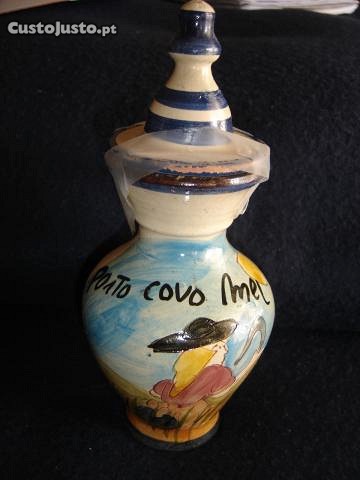 Preço: 4 €Jarro pequeno em barro, com tampa, pintado à mão
