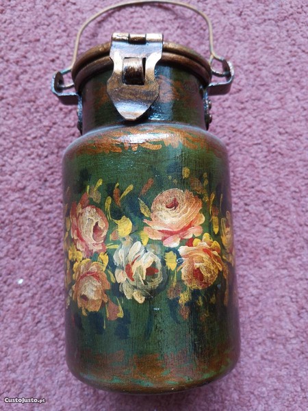 Bilha de leite antiga pintada a oleo. Peça decorativa e única.