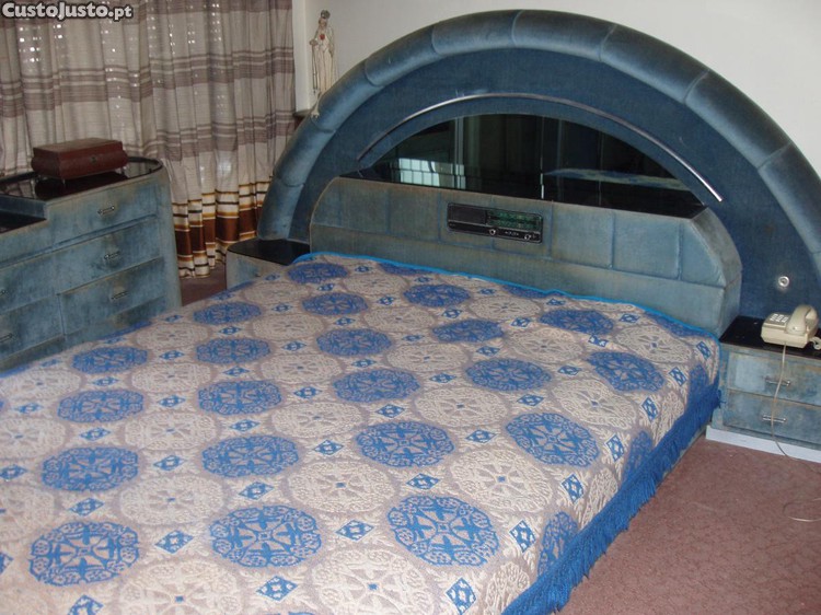 Linda cama casal com mesas de cabeira integradas, em veludo, peça rara bonita e intemporal para restaurar, caso queira.