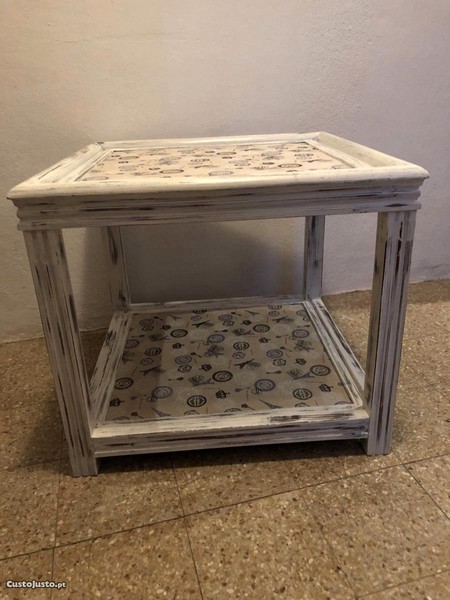 completamente restaurada e personalizada em branco velho decapê e tecido com 60cmx60cm , altura 53cm . Apos restauro não foi mais utilizada