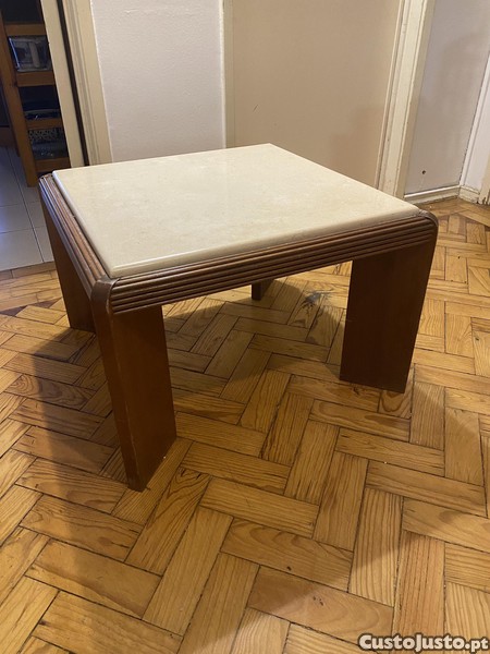 Preço: 60 €Mesa de apoio em madeira com tampo de mármore
