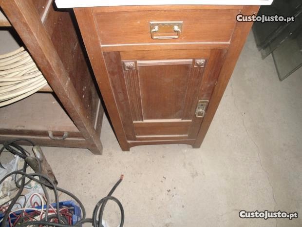 mesa de cabeceira em mogno com 1 gaveta e porta com tampo em pedra