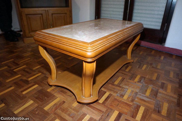 Mesa de Centro em madeira maciça e tampo de pedra mármore.