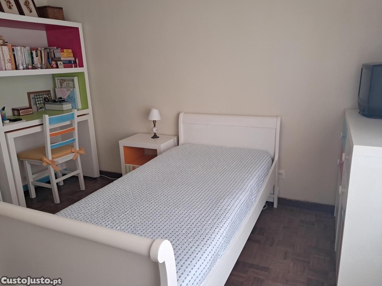 Mobília com muito espaço de organização e em bom estado de conservação. Ideal para quem procura uma solução prática, funcional e económica para um quarto completo de jovem/adolescente estudante.
