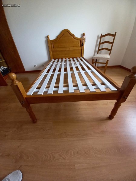 Mobilia de Quarto solteiro em cerejeira muito bom estado, com cama ,estrado, mesa de cabeceira, cómoda com espelho e cadeira