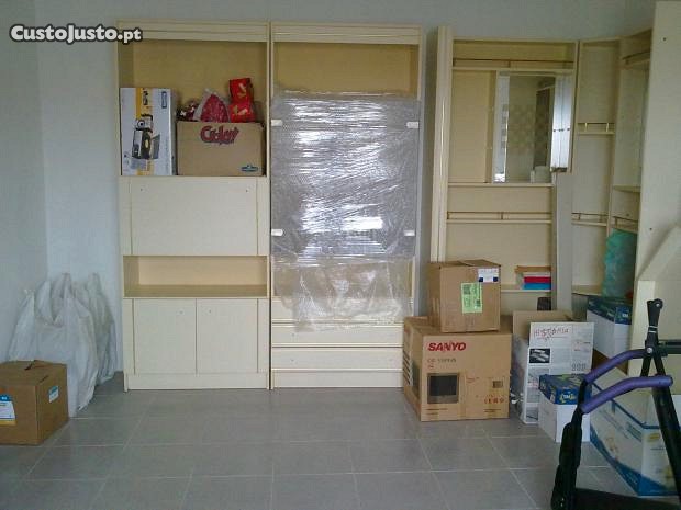 Vendo móvel de sala com 3 módulos. Um de canto que é bar, outro estante e outro vitrine, têm ligação eletrica. Cor creme