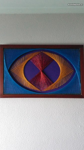 Vendo moldura decorada com linha de várias cores trabalho feito recentemente
