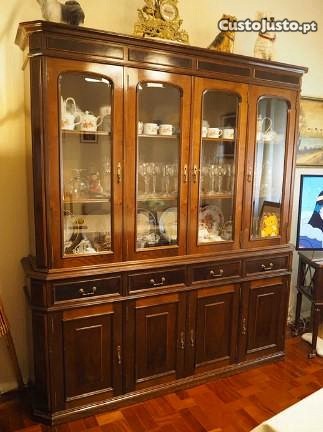 Móvel de sala tipo aparador com cristaleira em madeira maciça de (salvo erro) mogno.