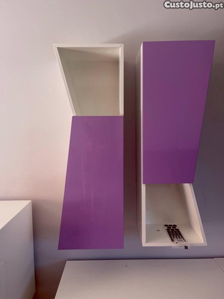 Preço: 180 €Móvel de parede branco e roxo (2 partes). Como novo.