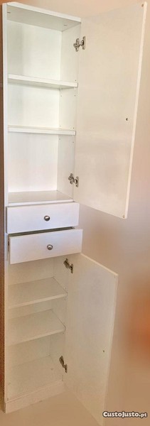 Possui duas portas com duas prateleiras intermédias cada porta, que podem facilmente ser ajustadas em altura para adequar o espaço às suas necessidades de arrumação.