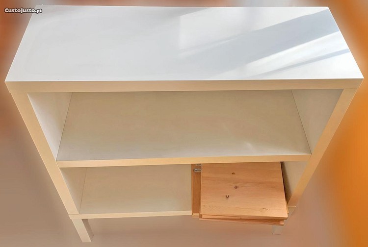 Em madeira, possui uma prateleira intermédia que pode ajustar facilmente o espaço às suas necessidades de arrumação.