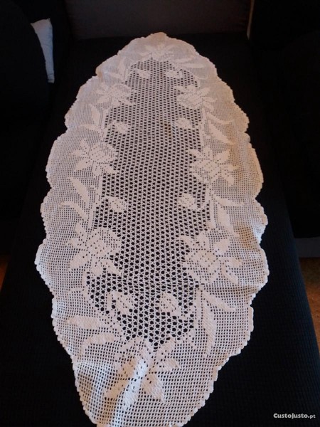 Vendo naperon branco antigo, feito à mão, oval, com as dimensões de 130cm de comprido, e 60cm de largura