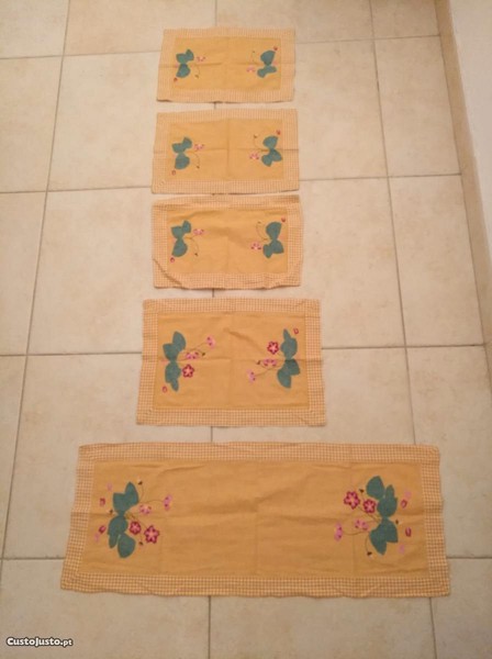 5 Naprons em tecido bordados para cozinha de cor alaranjada composto por: