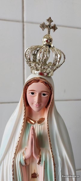 Escultura de Nossa Senhora de Fátima com pombas, comprada no local.