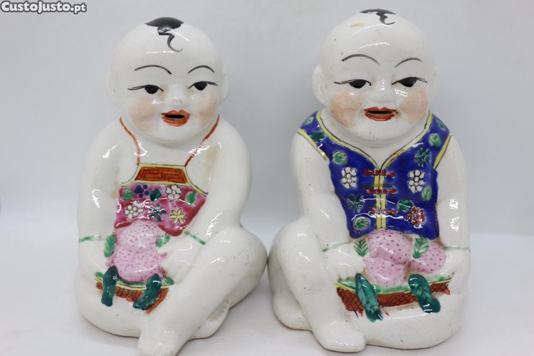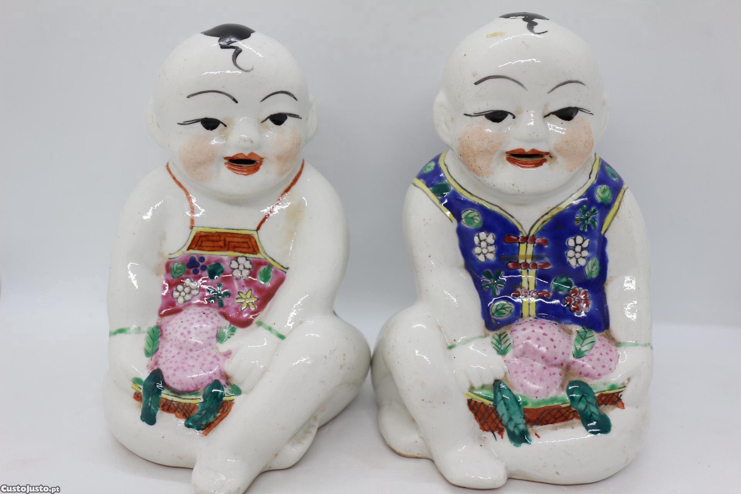 Preço: 180 €Par Baby Boy em Porcelana Chinesa Decoração Policromática 15 cm