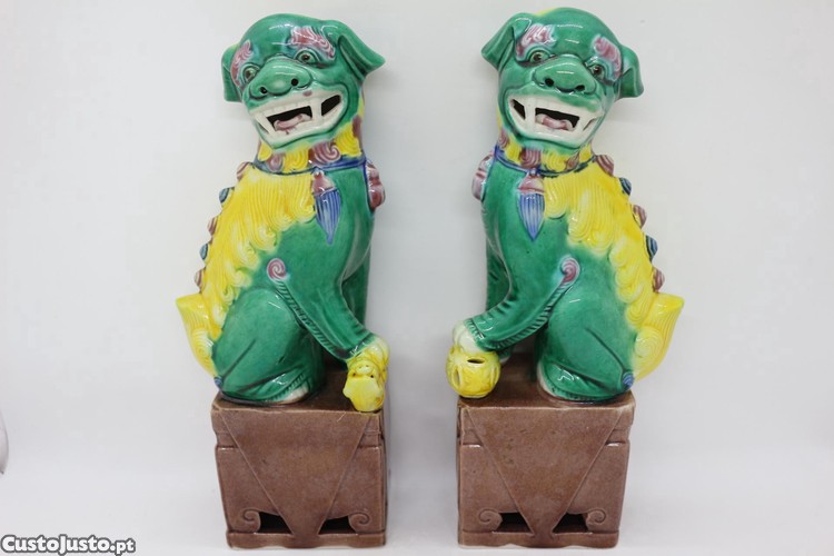 Par Cães Foo 20cm Eggs and Spinach Porcelana Chinesa XX Marcados