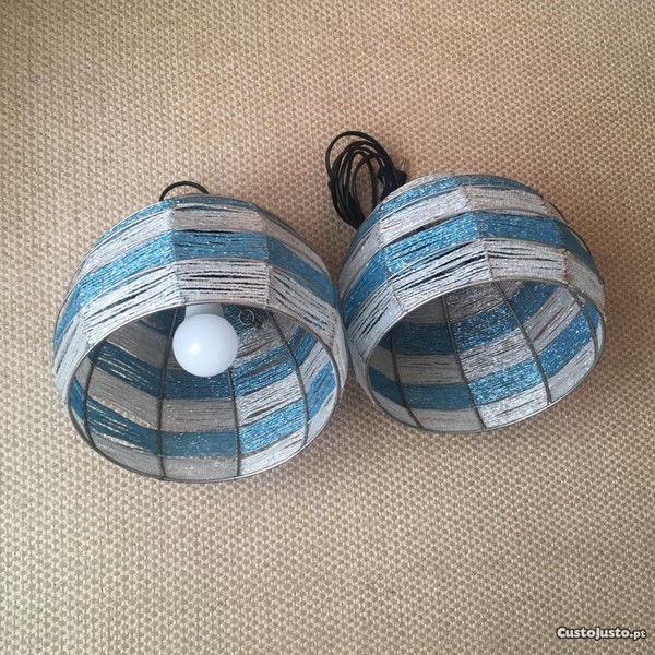 Par de abajour / candeeiros com missangas turquesa e prateado,com fio para ligar à ficha