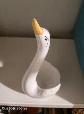 Peça cerâmica em forma de cisne, com possibilidade de servir de pequeno vaso de flores, porta vela ou mesmo um chaveiro ou apenas decorativo. Já bastante antigo, com quase 40 anos, mas em perfeito estado de conservação