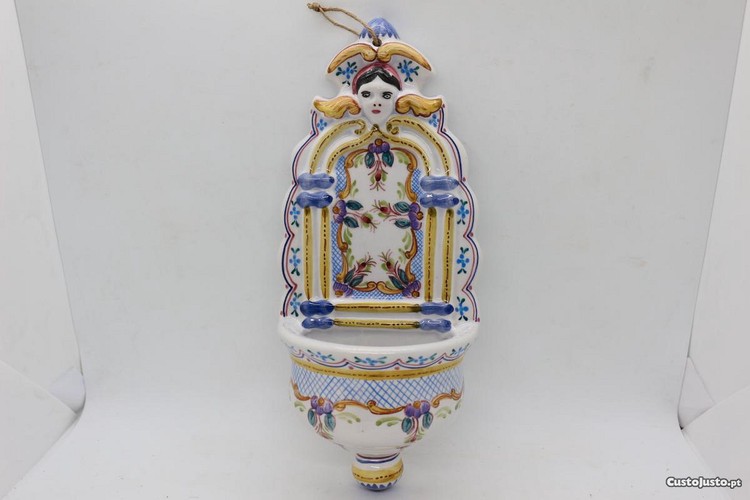 Pia de Água Benta cerâmica Valadares AGA Gaia Pintura Manual nº 26 cm