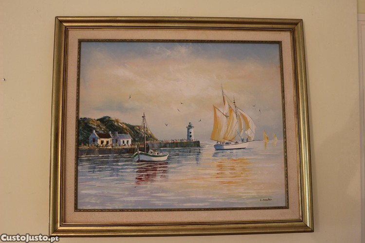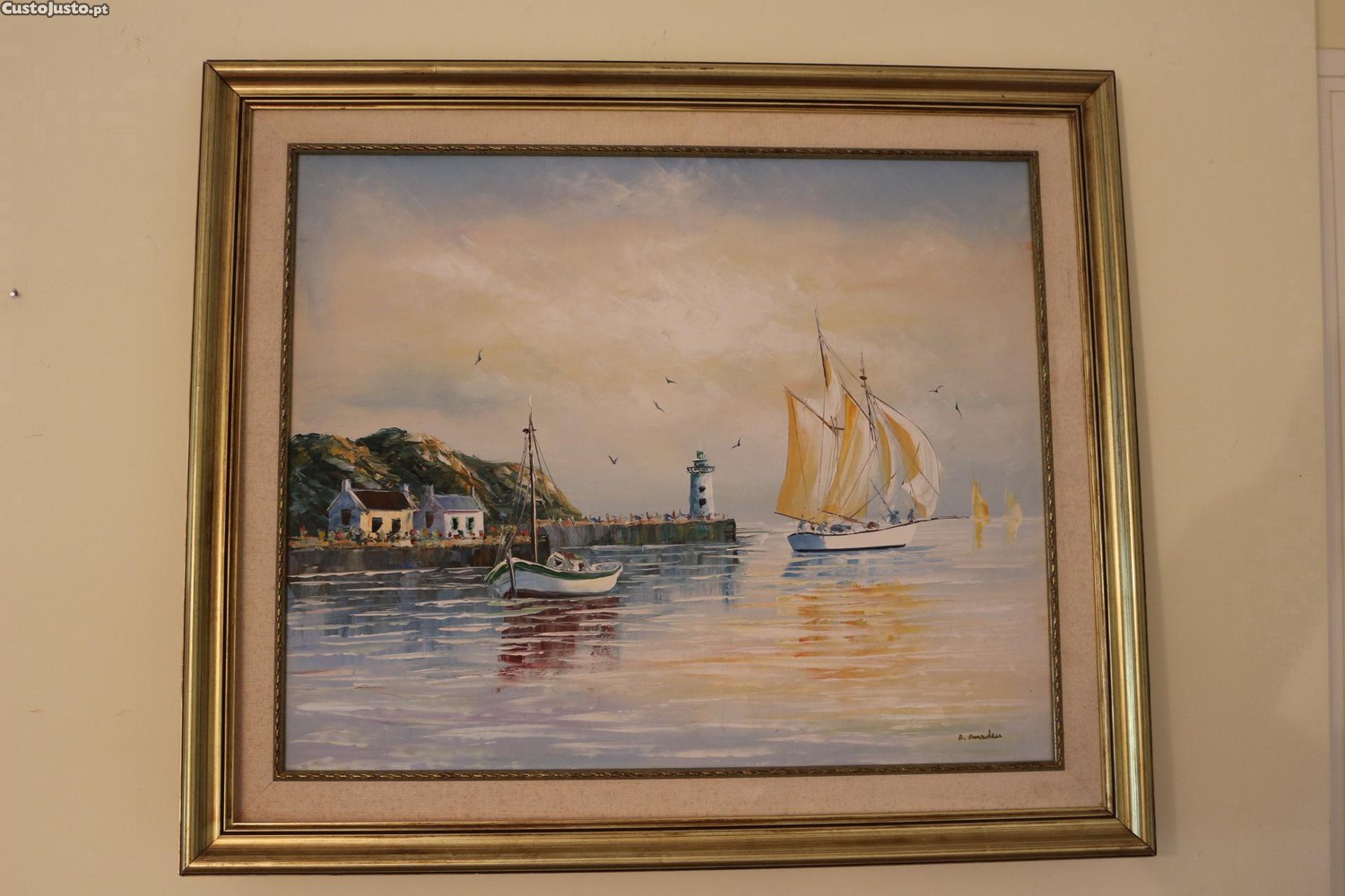 Pintura A. Amadeu Original Acrílico s tela Paisagem Marítima com Farol
