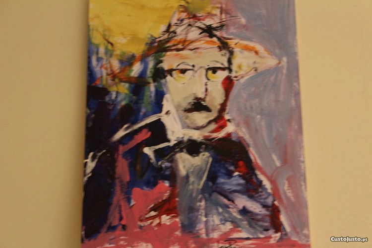 Quadro do pintor Carlos Góis Pino, (n. 1968) motivo "Fernando Pessoa" em Acrílico sobre Cartão, assinado