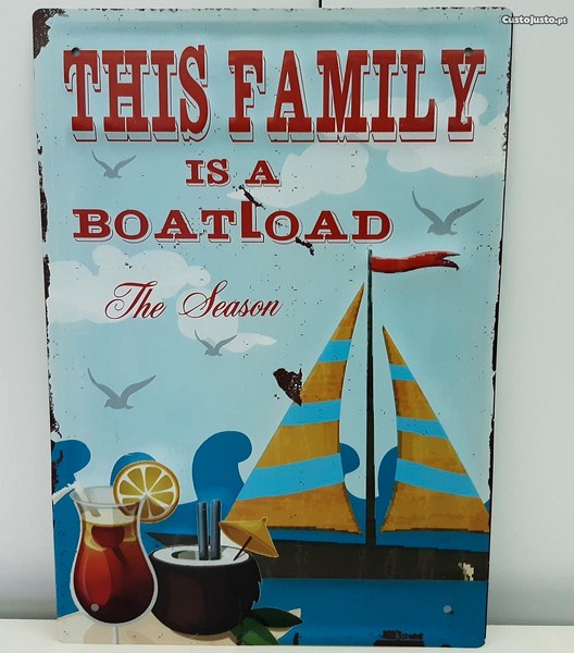 Preço: 10 €Placa Decorativa 40x28cm Chapa Metal Relevo Family BoatLoad