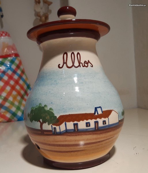 Preço: 15 €Pote c/ Tampa Decor Barro Vidrado 20cm Alhos Pintado à Mão Paula Lança
