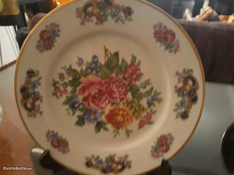 Pote com 18 cm de diametro e prato com 27 cm, 25 EUR cada peca