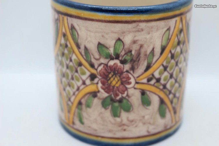 Pote floral da fábrica de Sant'Anna cores fortes robusta, diferente vidrado, antiga