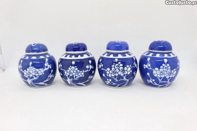 Pote Porcelana Chinesa Decoração Ginger ou Prunus Kangxi a Azul e Branco XX 7 cm