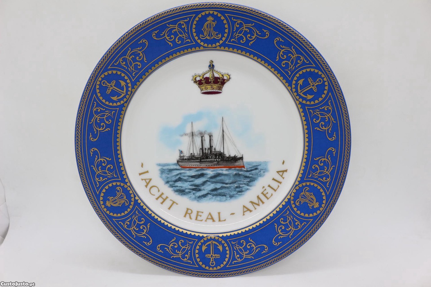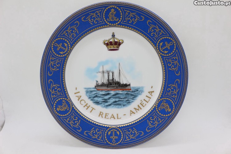 Prato em porcelana do Iate Real Amélia em tons azul e coroa em homenagem ao Rei D. Carlos um raro testemunho artístico, uma edição limitada colecções philae 1990 com 21 cm