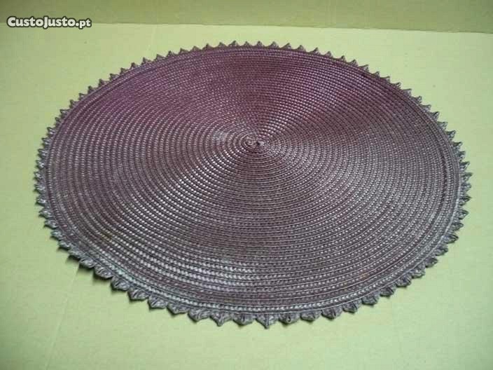 Base protectora de mesas para jarras feita de palha natural exótica. Tem 36 cm de diâmetro e é de cor roxa. Está em estdo novo. Barato para desocupar. Negociável, vendo pela melhor oferta.