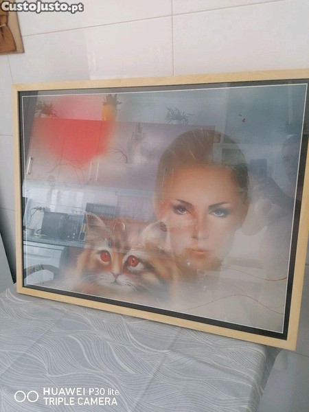 Quadro de decoração com moldura de madeira e vidro L83cm por A 65cm