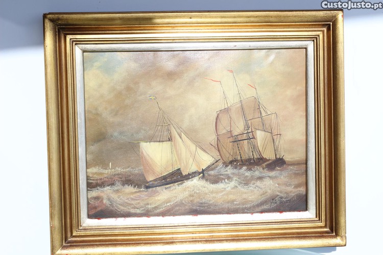 Pintura de JOÃO PEIXOTO (Séc. XX) Marinha Óleo sobre Tela Assinado e emoldurado, quadro dos mais antigos do pintor formato mais pequeno