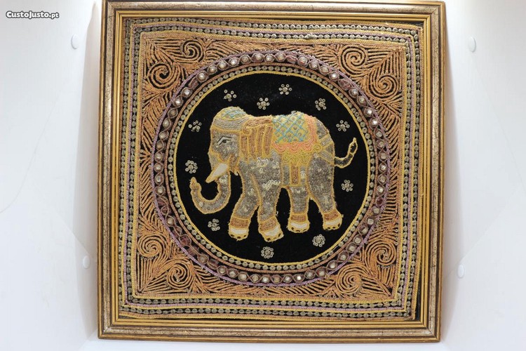 Preço: 295 €Quadro Mandala c bordado Tailandês Elefante Sorte