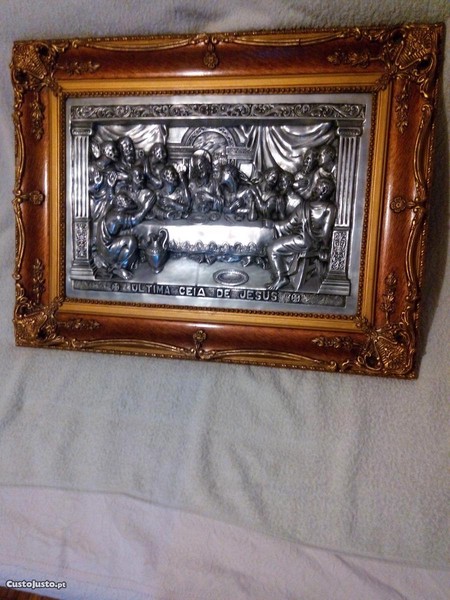 Quadro da Ultima Ceia de Cristo em relevo de estanho
