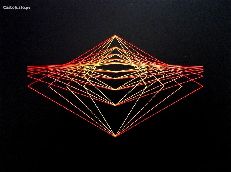 Composição: Madeira, 50 furos e 4 cores de linha.