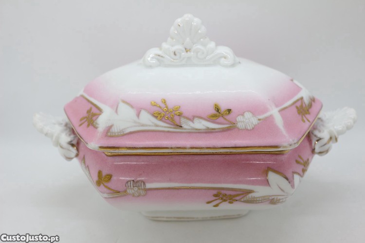 Preço: 150 €RARA Terrina Rosa Degradê e Ouro Pegas com Florões Vista Alegre 1870